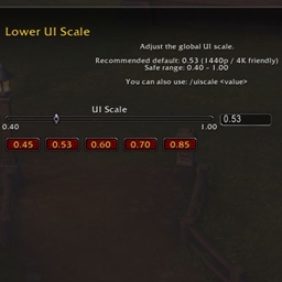 这是一个轻量级插件,允许您通过滑块、可编辑数值框、预设值和/uiscale命令来精确控制魔兽世界UI的缩放比例。该插件专为魔兽世界12.0及以上版本构建,不使用任何已弃用的API。